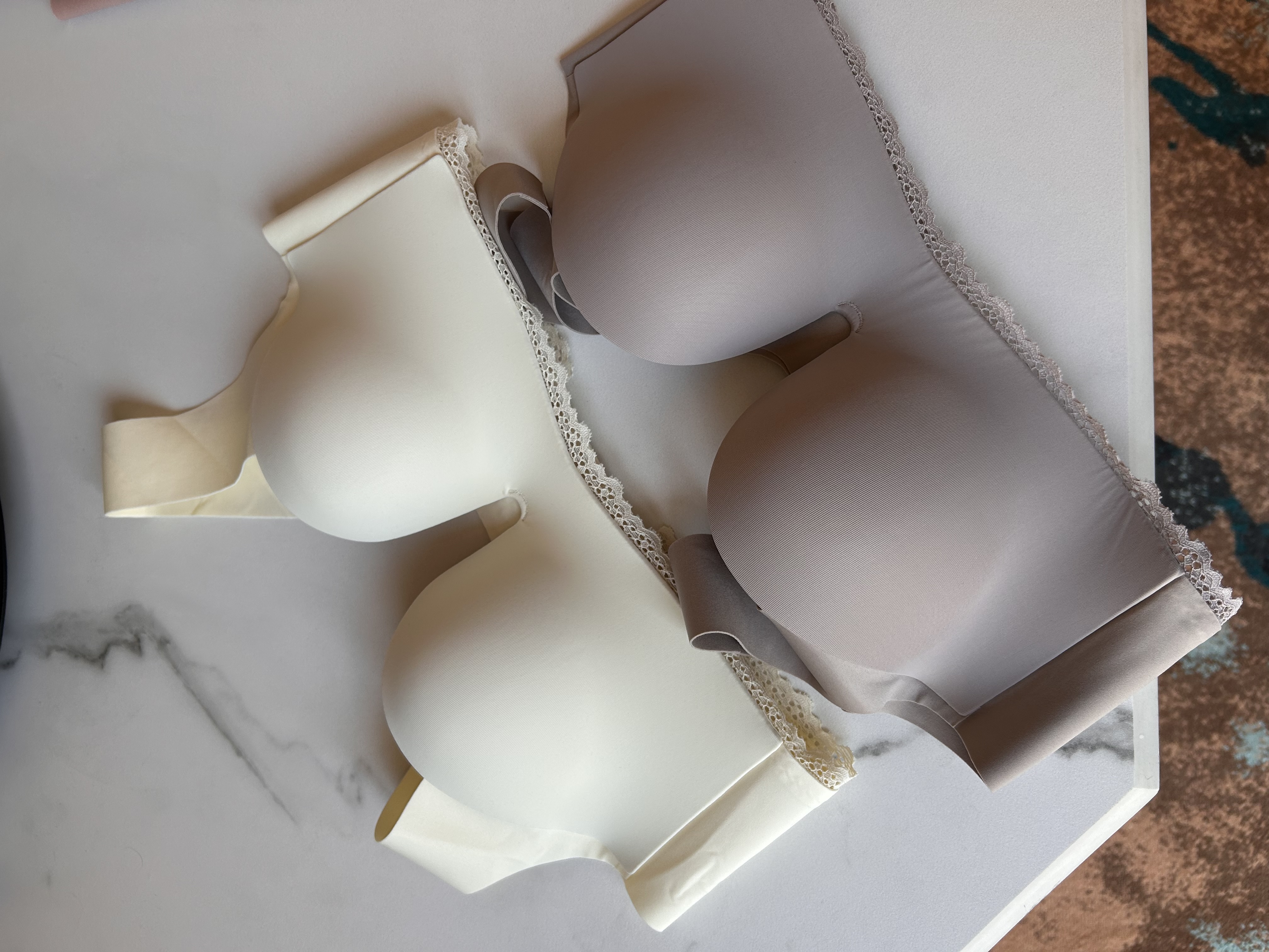 (احلى و انعم صدريات رح تلبسيهم) صدريات بو دانتيل .. الغنية عن التعريف كب بي صدر متوسط وإذا تلبسين سي اول فتره يكون شوي فائض بعدين يتاخذ شكل الصدر ( بنات كب سي اخذون حبه أو حبتين من هنوع وخلوه معاكم ل المشاوير الطويله والخطوط أللي تريدون تتخففون احلى وأنعم صدريات ممكن يمرون عليش ما يسدون الدوره اللمفاويه في الصدر بوش آب لكن البوش الأنيق مش جاي أوفر يعطي رفعه وايد حلوه وأنيقة نفس عارضات الأزياء ومررررررريح جدا جدا ل أقصى معنى الراحه السير ثابت ( ألوان أسكريمية تحسون يندمجون مع البشره بشكل وايد حلو الاستثمار الافضل والأفضل ل صحتك